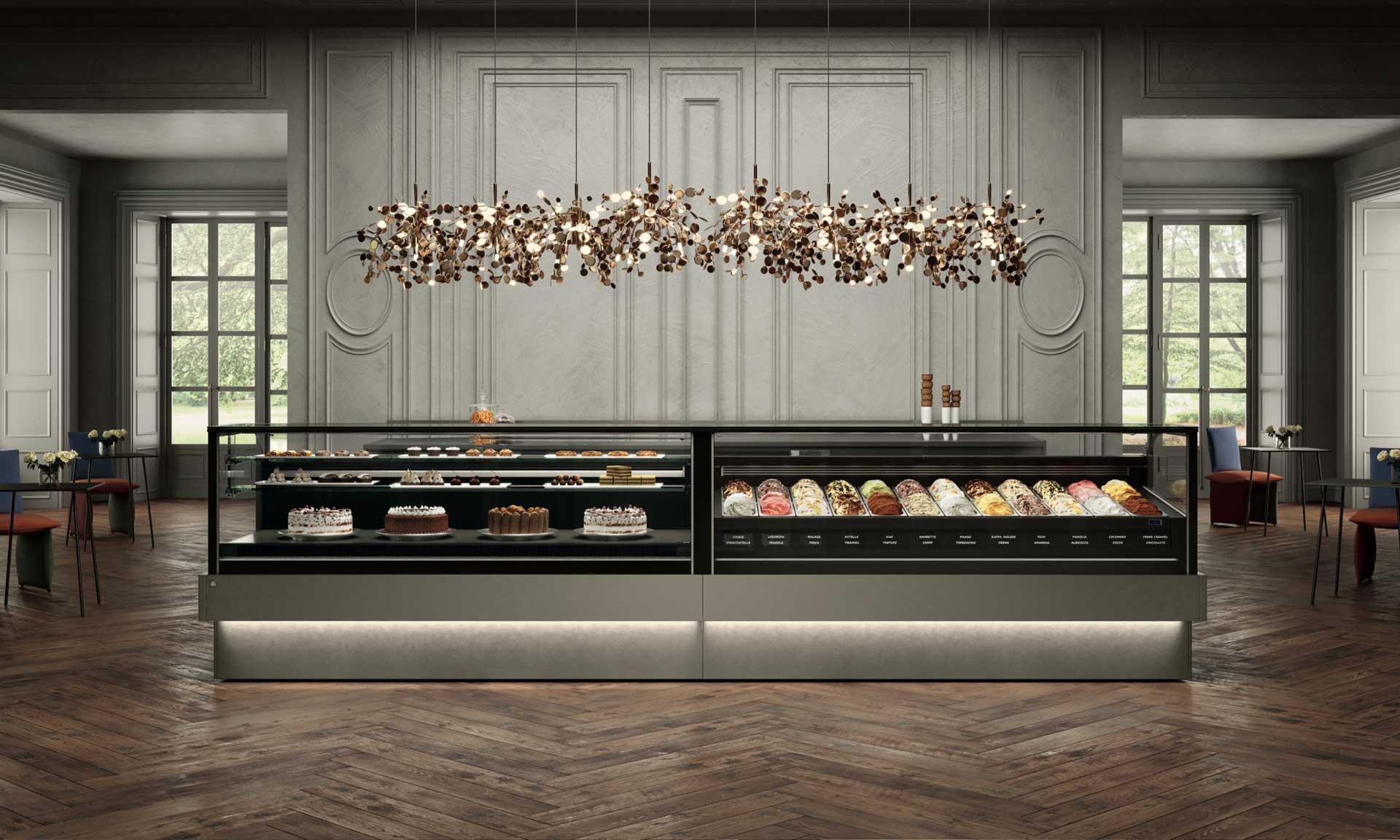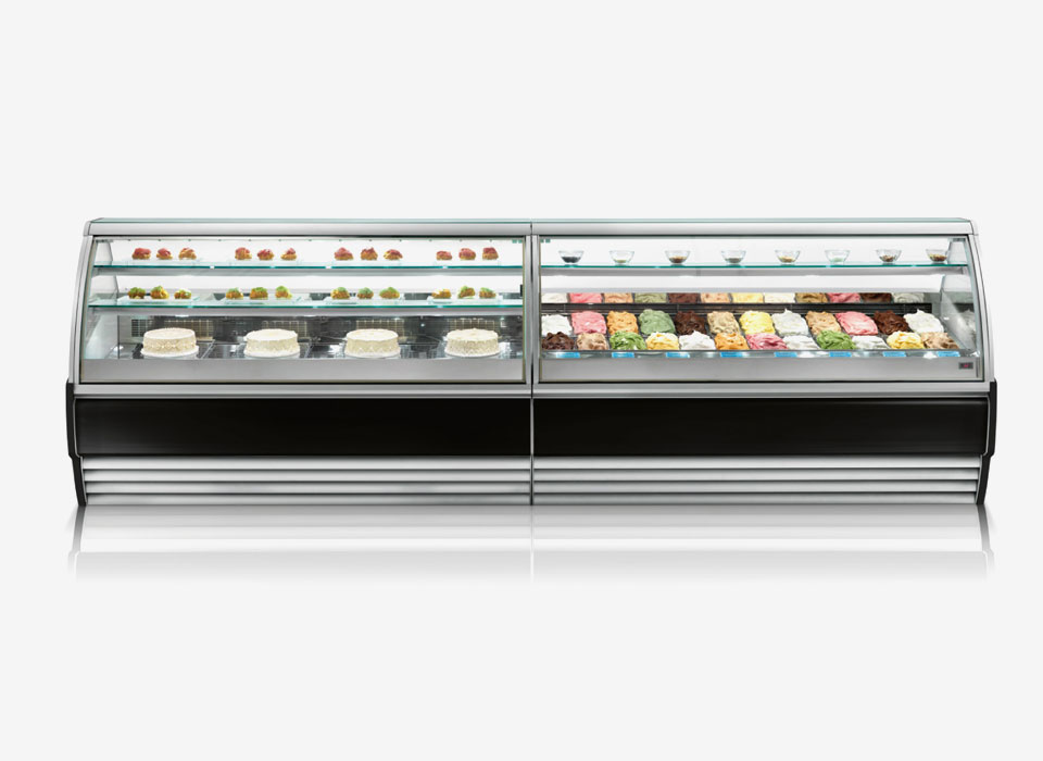 Skriveni dovod zraka fokus stavlja na sladoled i kolače,  Gelato i Pecivo, koji izgledaju kao da lebde, te su savršeno vidljivi iz bilo kojeg kuta. Opremljena sa 3 x 4000K LED izvora svjetla koji dodatno naglašavaju izložene proizvode. Izgled, okus i kvaliteta izloženih proizvoda zadržava sve svoje izvorne karakteristike čak i u najkritičnijim uvjetima okoline po pitanju vrućine i vlage. Maksimalna higijena i sigurnost za hranu i potrošače, zahvaljujući polu-hermetičkom zatvaranju kliznih vrata i posebnom GHA® anodizirajućem tretmanu s antibakterijskim svojstvima. Osim što osigurava najbolje očuvanje sladoleda, HCS pametni sustav odmrzavanja štedi energiju inteligentnim smanjenjem broja odmrzavanja.